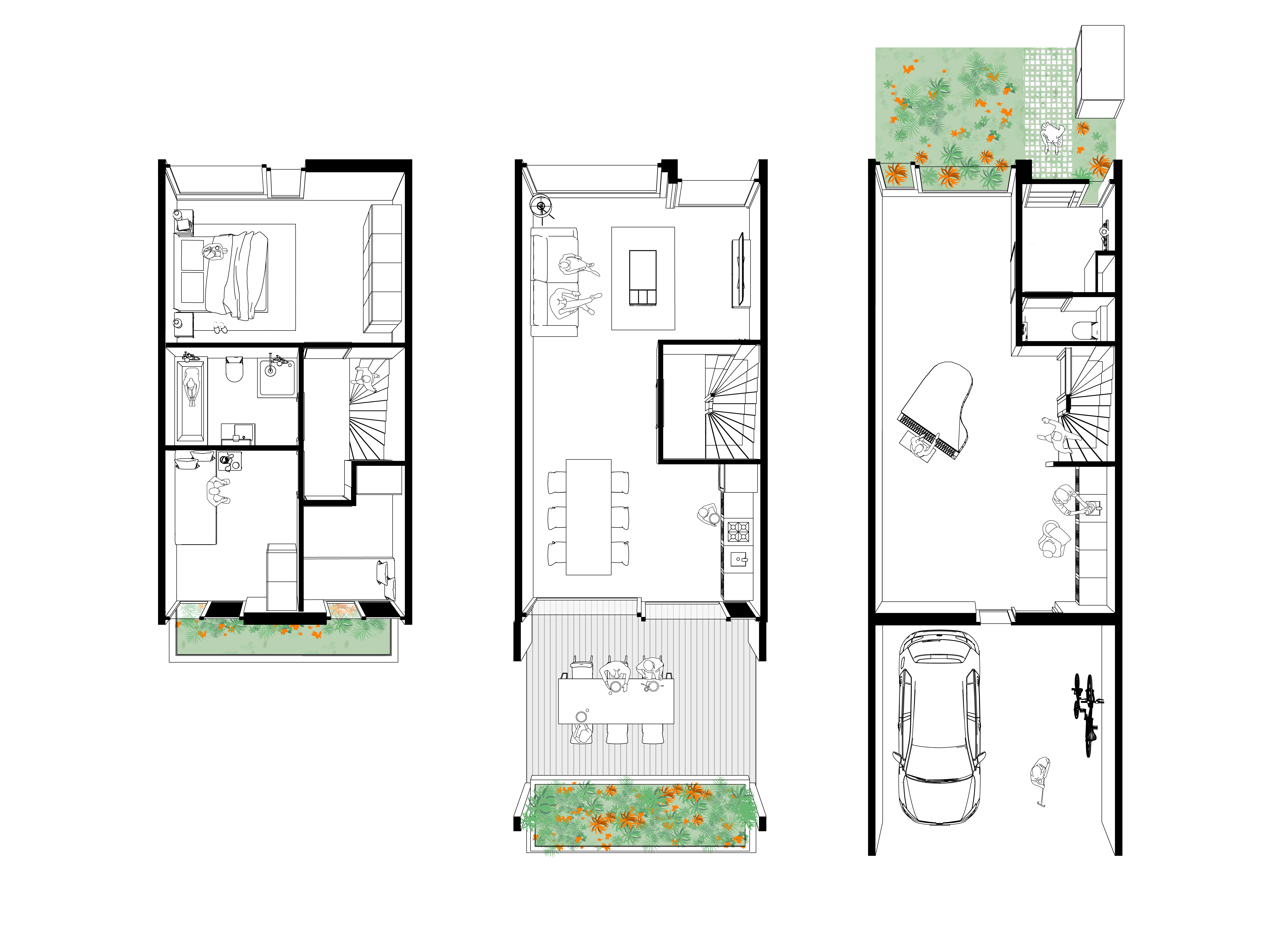 Door de minimaal bebouwde footprint onstaat een maximale groene ruimte, zowel publiek, collectief als privaat.