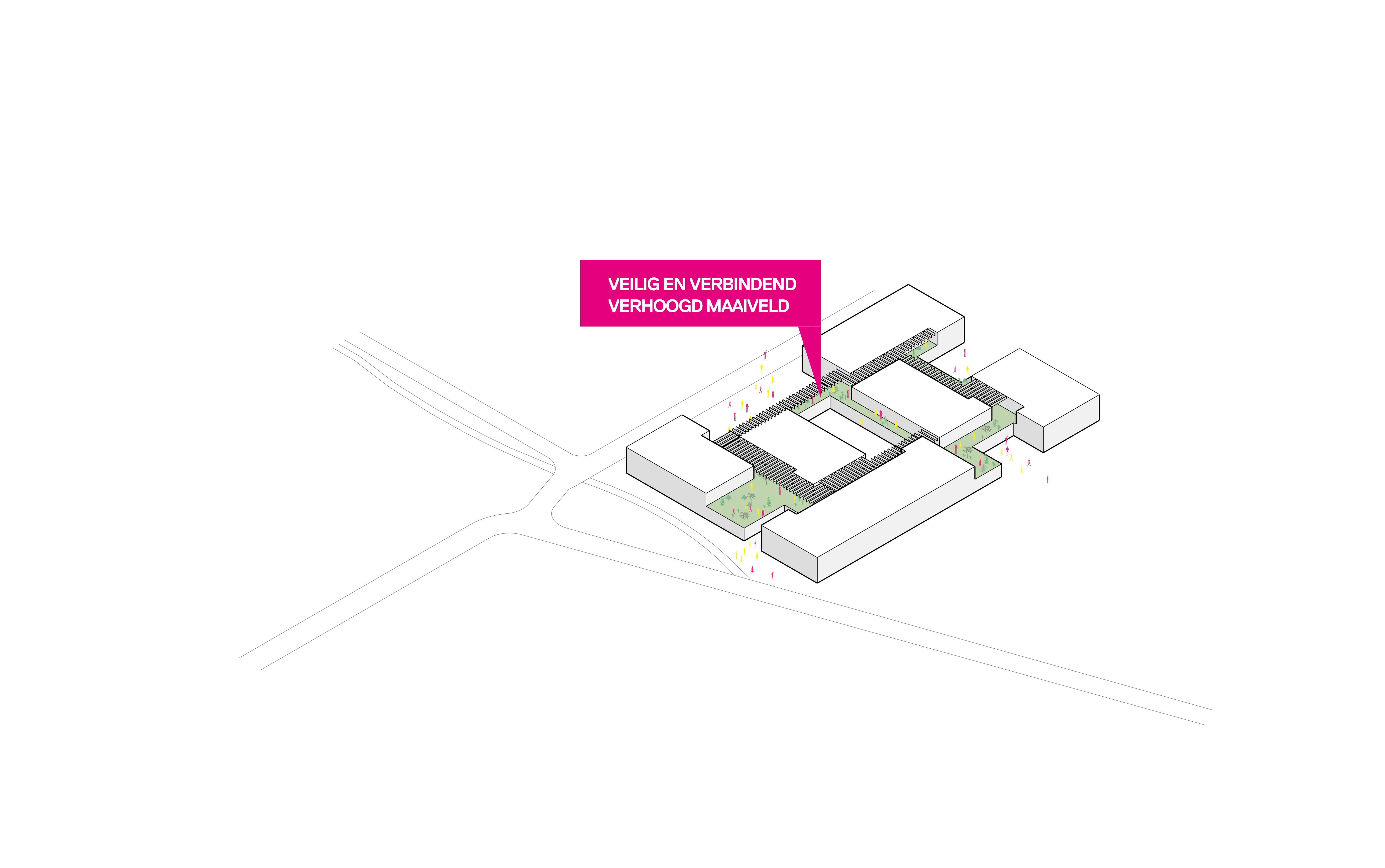 In het ontwerp lopen de publieke en private werelden geleidelijk in elkaar over. Het zorgvuldig omgaan met schaal, sferen, functies, grenzen en verweven speelt een grote rol om veiligheid en geborgenheid van de individuele bewoner te waarborgen en tegelijkertijd zijn leefwereld te verruimen.