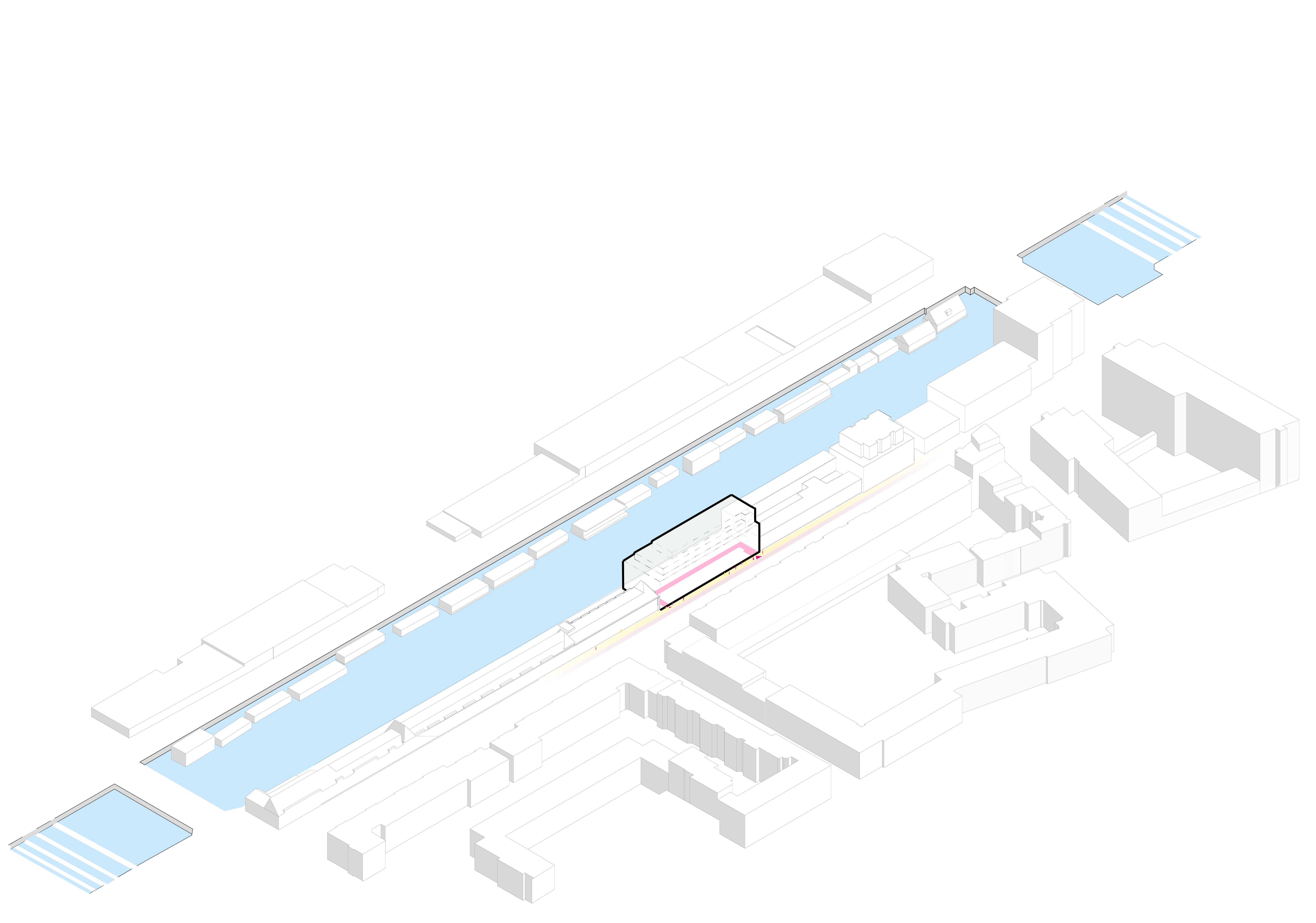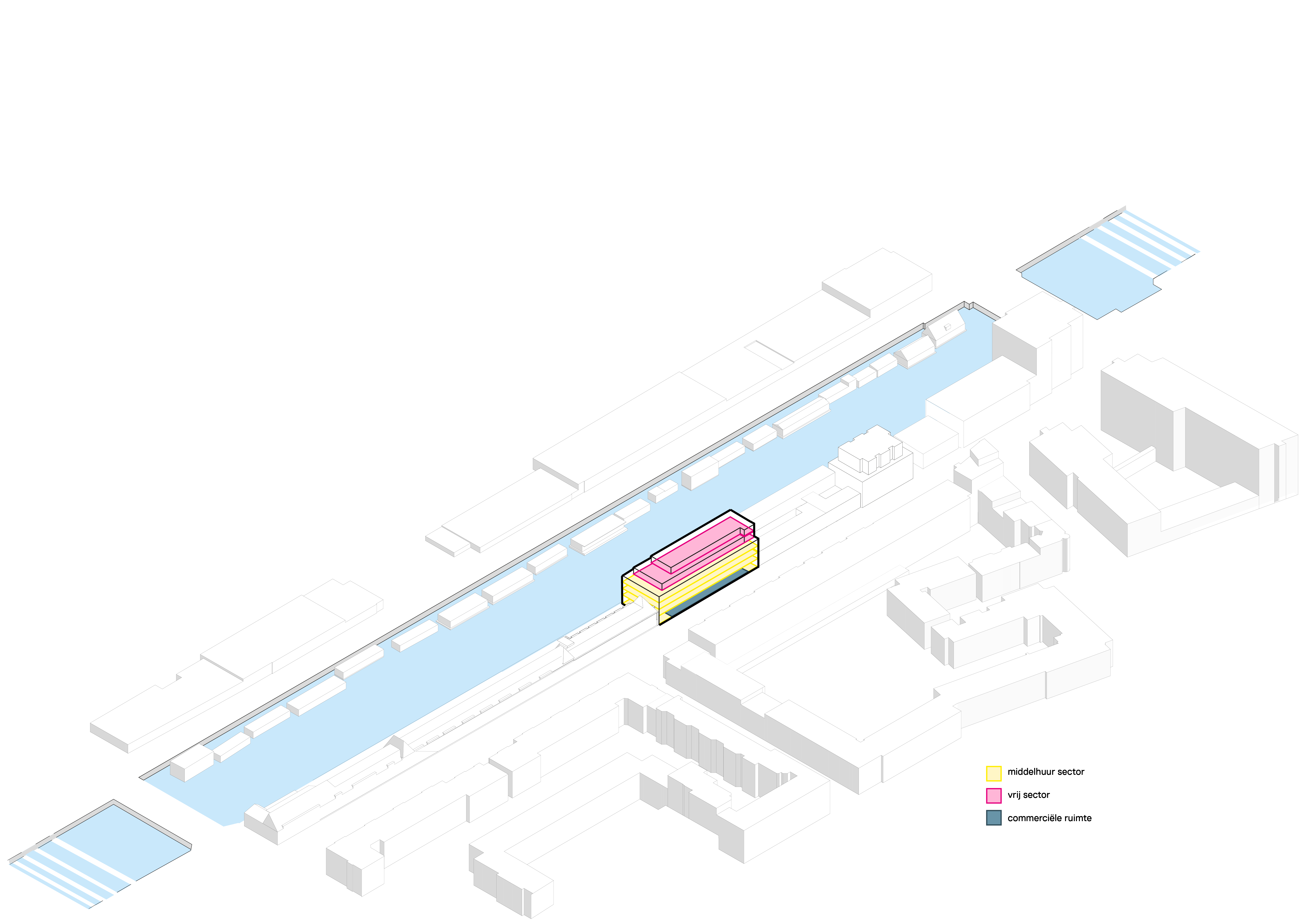 Op de begane grond bevinden zich drie bedrijfsruimtes aan de straatzijde, die mogelijk gecombineerd kunnen worden met één of twee grote commerciële ruimten. De bedrijvigheid vormt voor de Zeeburgerdijk een levendige plint. Uitgesloten invulling van de ruimtes zijn detailhandel, darkstores of hotels.